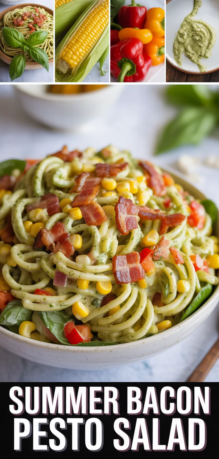 Summer Pasta Salad With Corn, Bell Pepper, Bacon, And Creamy Pesto Dressing Recipe